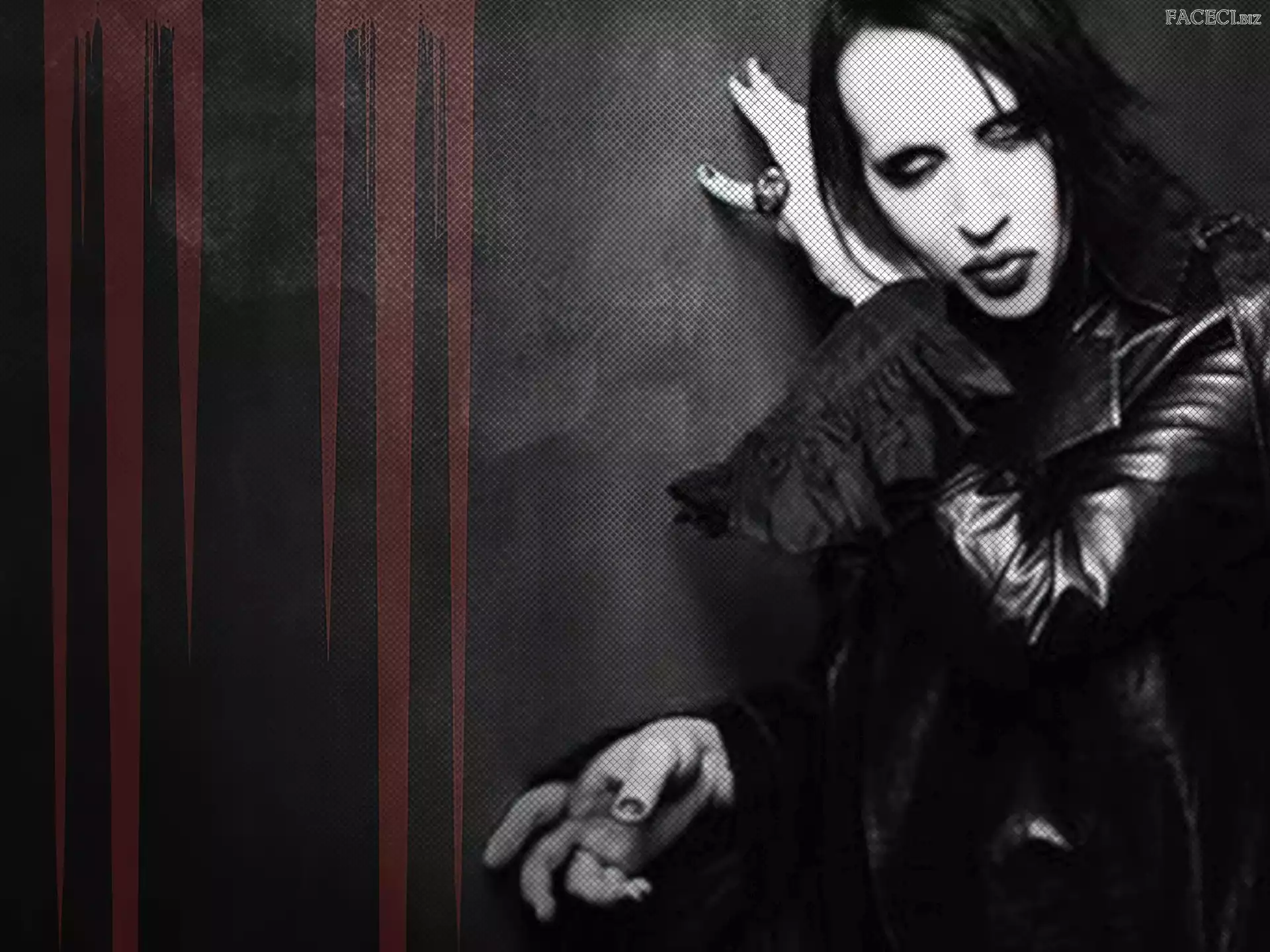 Marilyn Manson, Brian Hugh Warner, Kapelusz, Czerwony Rękawiczka, Czarna, Język, Marilyn Manson, Zęby Brian Hugh Warner Gwiazda, Marilyn Manson, Czerwona Brian Hugh Warner Oko, Marilyn Manson, Szklane Brian Hugh Warner Twarz, Marilyn Manson Spodnie, Brian Hugh Warner, Czerwone Marynarka, Marilyn Manson Pazury, Marilyn Manson Makijaż, Marilyn Manson, Sygnet Brian Hugh Warner Okno, Marilyn Manson
